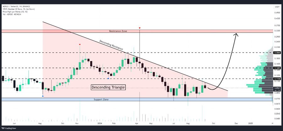 #AERGO is ready to breakout of a descending triangle pattern on the weekly chart If confirmed, we could see a…